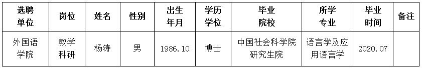 经用人单位推荐,人力资源部审查,学校教学督导及院系相关专家考核,九游会在线登录官网拟确定下列人员来校工作。本着公平、公正、公开的原则,现将本次拟选聘人员基本情况公示如下: