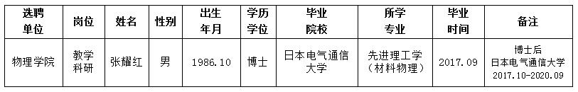 经用人单位推荐,人力资源部审查,学校教学督导及院系相关专家考核,九游会在线登录官网拟确定下列人员来校工作。本着公平、公正、公开的原则,现将本次拟选聘人员基本情况公示如下: