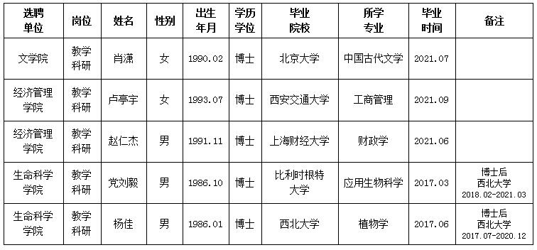 经用人单位推荐,人力资源部审查,学校教学督导及院系相关专家考核,九游会在线登录官网拟确定下列人员来校工作。本着公平、公正、公开的原则,现将本次拟选聘人员基本情况公示如下: