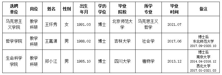 经用人单位推荐,人力资源部审查,学校教学督导及院系相关专家考核,九游会在线登录官网拟确定下列人员来校工作。本着公平、公正、公开的原则,现将本次拟选聘人员基本情况公示如下: