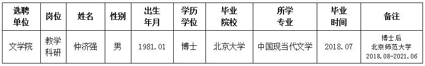 经用人单位推荐,人力资源部审查,学校教学督导及院系相关专家考核,九游会在线登录官网拟确定下列人员来校工作。本着公平、公正、公开的原则,现将本次拟选聘人员基本情况公示如下: