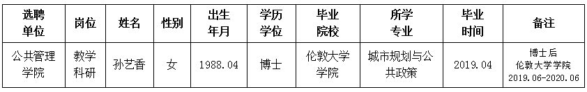 经用人单位推荐,人力资源部审查,学校教学督导及院系相关专家考核,九游会在线登录官网拟确定下列人员来校工作。本着公平、公正、公开的原则,现将本次拟选聘人员基本情况公示如下: