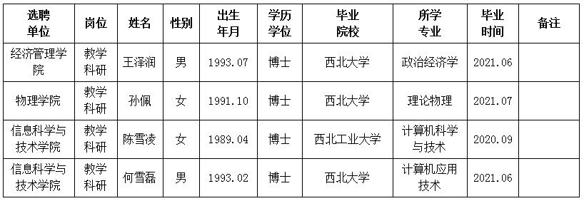 经用人单位推荐,人力资源部审查,学校教学督导及院系相关专家考核,九游会在线登录官网拟确定下列人员来校工作。本着公平、公正、公开的原则,现将本次拟选聘人员基本情况公示如下:
