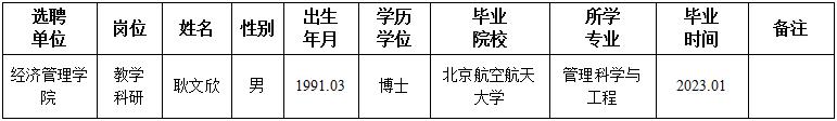 经用人单位及教学督导考核、学校研究,拟同意选聘下列人员来校工作,其聘任关系为A类人事代理。本着公平、公正、公开的原则,现将拟选聘人员基本情况公示如下: