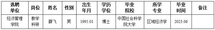 经用人单位及教学督导考核、学校研究,拟同意选聘下列人员来校工作,其聘任关系为人事代理。本着公平、公正、公开的原则,现将拟选聘人员基本情况公示如下: