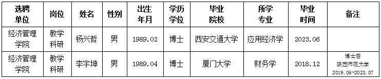 经用人单位推荐,人力资源部审查,学校教学督导及院系相关专家考核,九游会在线登录官网拟确定下列人员来校工作。本着公平、公正、公开的原则,现将本次拟选聘人员基本情况公示如下: