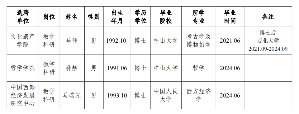 经用人单位推荐,人力资源部审查,学校教学督导及院系相关专家考核,学校专家评审会审议,九游会在线登录官网拟确定下列人员来校工作,聘任方式为事业编正常选聘。本着公平、公正、公开的原则,现将本次拟选聘人员基本情况公示如下: