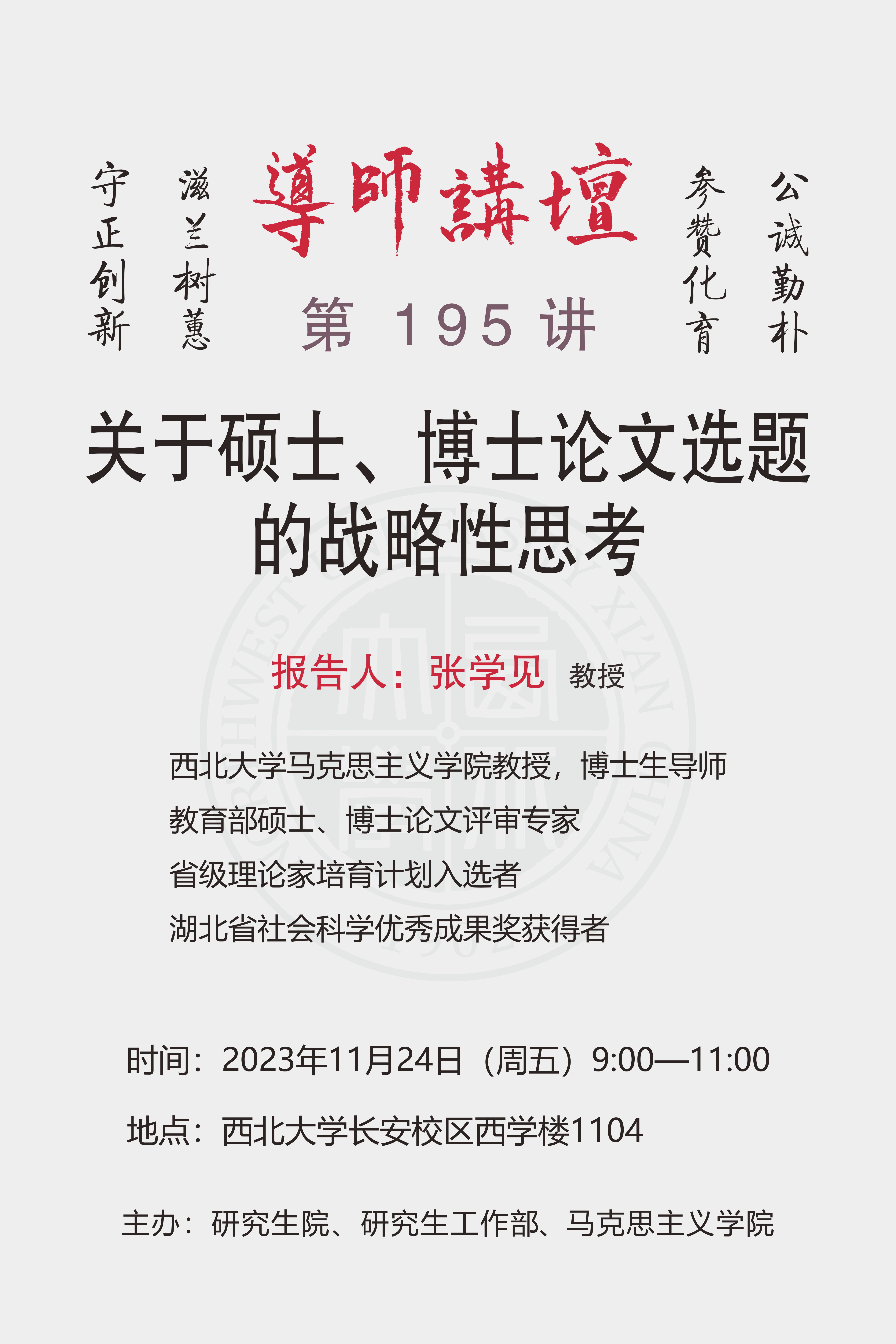 导师讲坛第195讲:关于硕士、博士论文选题的战略性思考