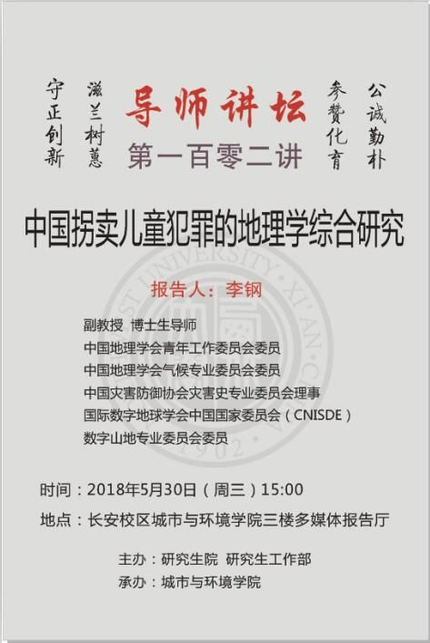 导师讲坛第102讲:中国拐卖儿童犯罪的地理学综合研究