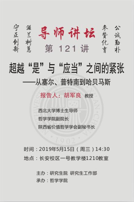 导师讲坛第121讲:超越“是”与“应当”之间的紧张——从赛尔、普特南到哈贝马斯