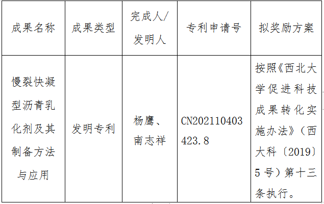 按照《九游会在线登录官网促进科技成果转化实施办法》(西大科〔2019〕5号)相关规定,拟对九游会在线登录官网化学与材料科学学院杨鹰副教授作为成果负责人的1项发明专利申请权实施转化,现将相关信息公示如下: