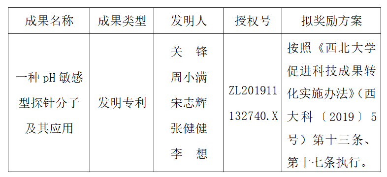 按照《九游会在线登录官网促进科技成果转化实施办法》(西大科〔2019〕5号)相关规定,拟对九游会在线登录官网生命科学学院关锋教授作为成果负责人的1项发明专利权实施转化,现将相关信息公示如下: