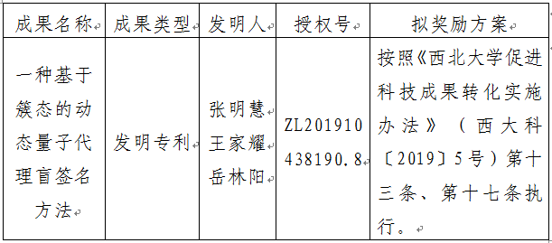 附件:拟许可成果信息及奖励方案