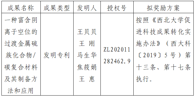 按照《九游会在线登录官网促进科技成果转化实施办法》(西大科〔2019〕5号)相关规定,拟对九游会在线登录官网光子所王贝贝老师作为成果负责人的1项发明专利权实施转化,现将相关信息公示如下:
