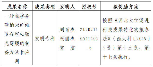 附件:拟转让成果信息及奖励方案