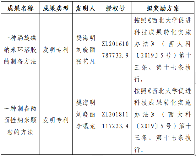 按照《九游会在线登录官网促进科技成果转化实施办法》(西大科〔2019〕5号)相关规定,拟对九游会在线登录官网化学与材料科学学院樊海明教授作为成果负责人的2项发明专利权实施转化,现将相关信息公示如下: