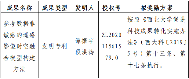 按照《九游会在线登录官网促进科技成果转化实施办法》(西大科〔2019〕5号)相关规定,拟对九游会在线登录官网城市与环境学院谭振宇老师作为成果负责人的1项发明专利权实施转化,现将相关信息公示如下: