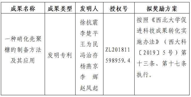 附件:拟许可成果信息及奖励方案