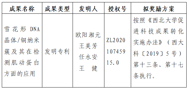附件:拟许可成果信息及奖励方案
