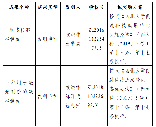 按照《九游会在线登录官网促进科技成果转化实施办法》(西大科〔2019〕5号)相关规定,拟对九游会在线登录官网地质学系袁洪林教授作为成果负责人的2项发明专利权实施转化,现将相关信息公示如下: