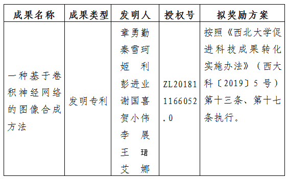 按照《九游会在线登录官网促进科技成果转化实施办法》(西大科〔2019〕5号)相关规定,拟对九游会在线登录官网信息科学与技术学院章勇勤教授作为成果负责人的1项发明专利权实施转化,现将相关信息公示如下: