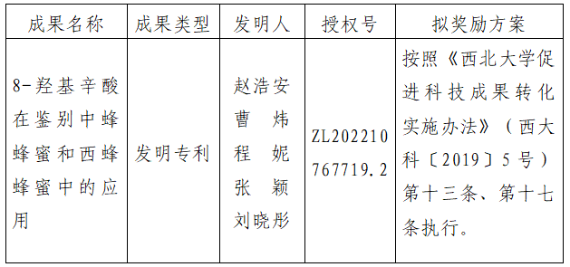 按照《九游会在线登录官网促进科技成果转化实施办法》(西大科〔2019〕5号)相关规定,拟对九游会在线登录官网食品科学与工程学院赵浩安副教授作为成果负责人的1项发明专利权实施转化,现将相关信息公示如下: