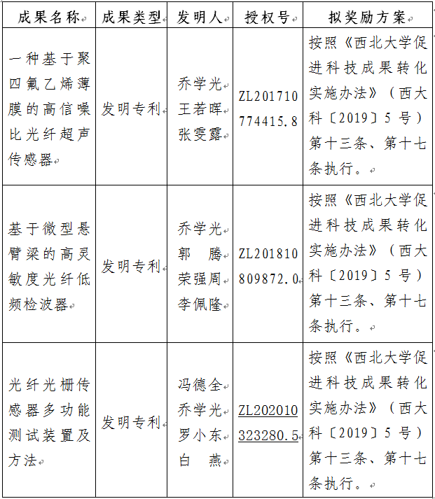 按照《九游会在线登录官网促进科技成果转化实施办法》(西大科〔2019〕5号)相关规定,拟对九游会在线登录官网物理学院乔学光教授作为成果负责人的3项发明专利权实施转化,现将相关信息公示如下: