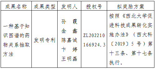 附件:拟许可成果信息及奖励方案