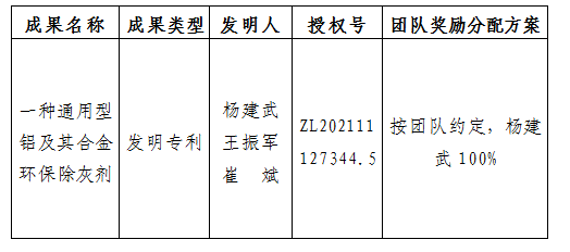 按照《九游会在线登录官网促进科技成果转化实施办法》(西大科〔2019〕5号)相关规定,拟对九游会在线登录官网化工学院杨建武老师作为成果负责人的1项发明专利权实施转化,现将相关信息公示如下: