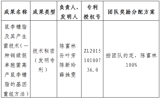 附件:拟许可成果信息及团队奖励分配方案