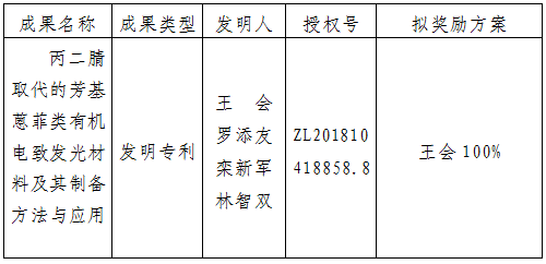 按照《九游会在线登录官网促进科技成果转化实施办法》(西大科〔2019〕5号)相关规定,拟对九游会在线登录官网化学与材料科学学院王会副教授作为成果负责人的1项发明专利权实施转化,现将相关信息公示如下: