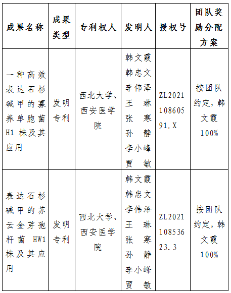 附件:拟转让成果信息及团队奖励分配方案