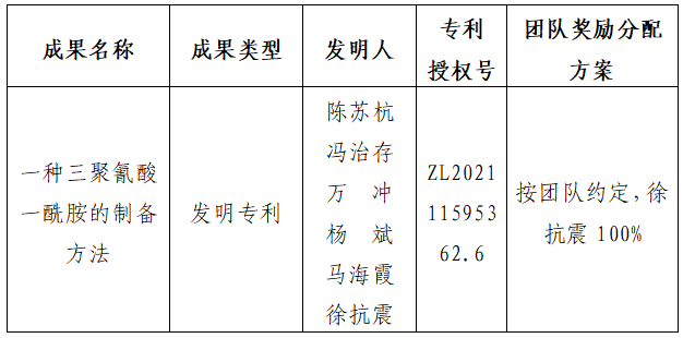 附件:拟许可成果信息及团队奖励分配方案