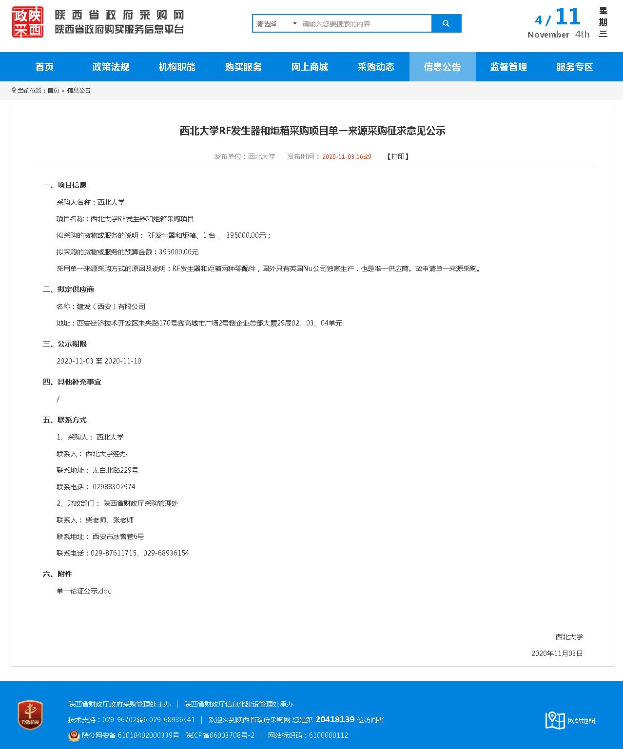 九游会在线登录官网RF发生器和炬箱采购项目单一来源采购征求意见公示