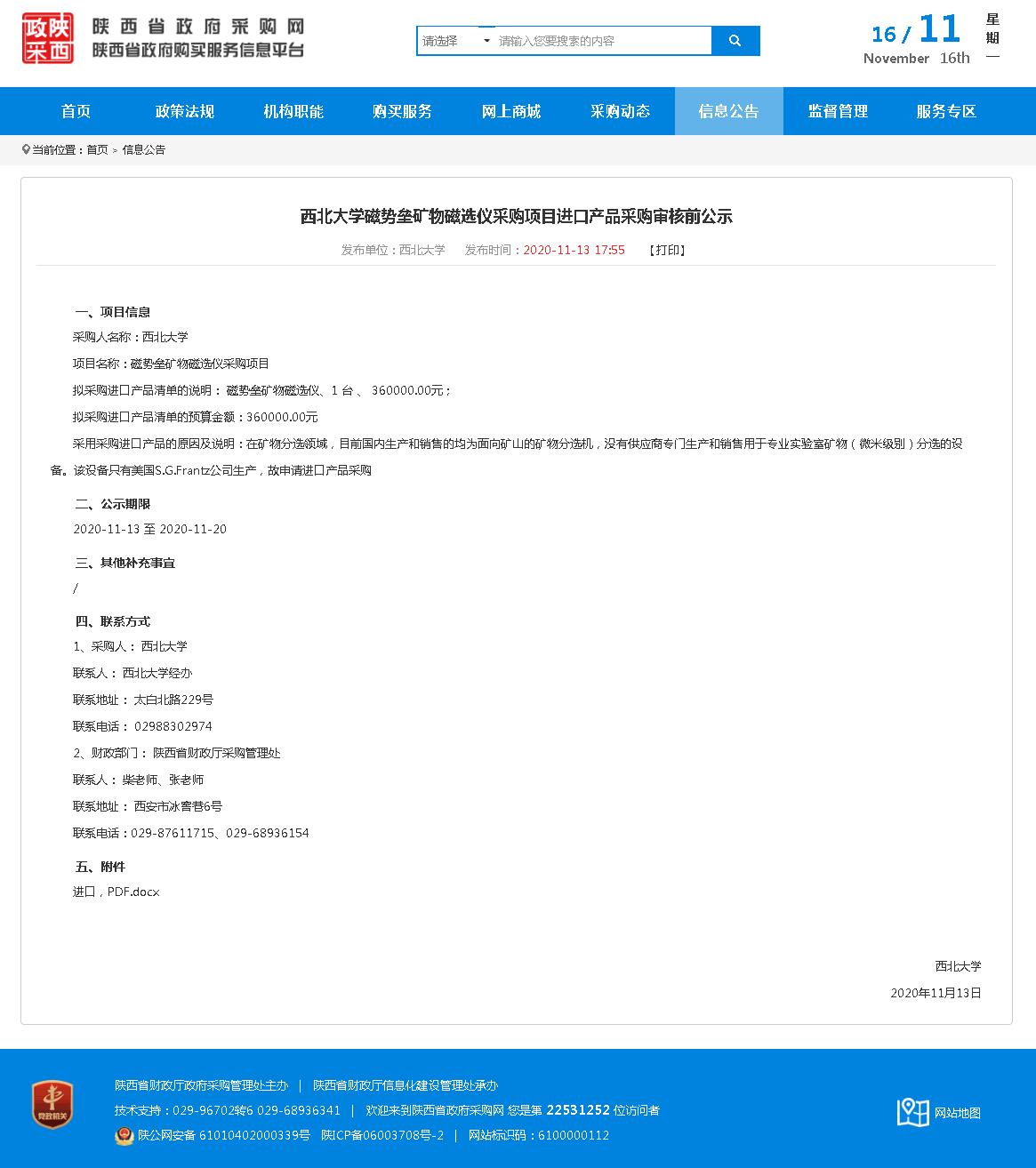 九游会在线登录官网磁势垒矿物磁选仪采购项目进口产品采购审核前公示