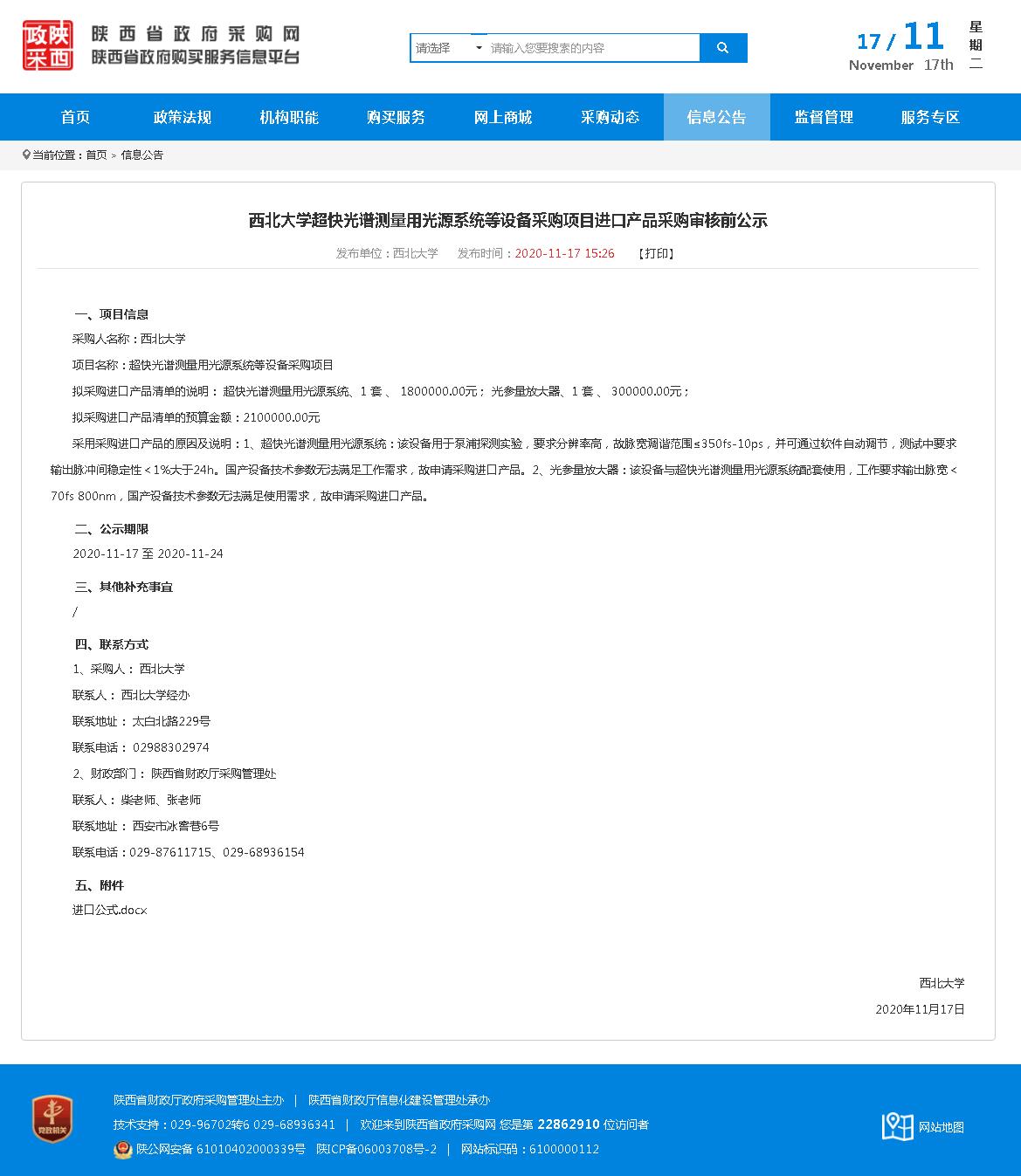 九游会在线登录官网超快光谱测量用光源系统等设备采购项目进口产品采购审核前公示