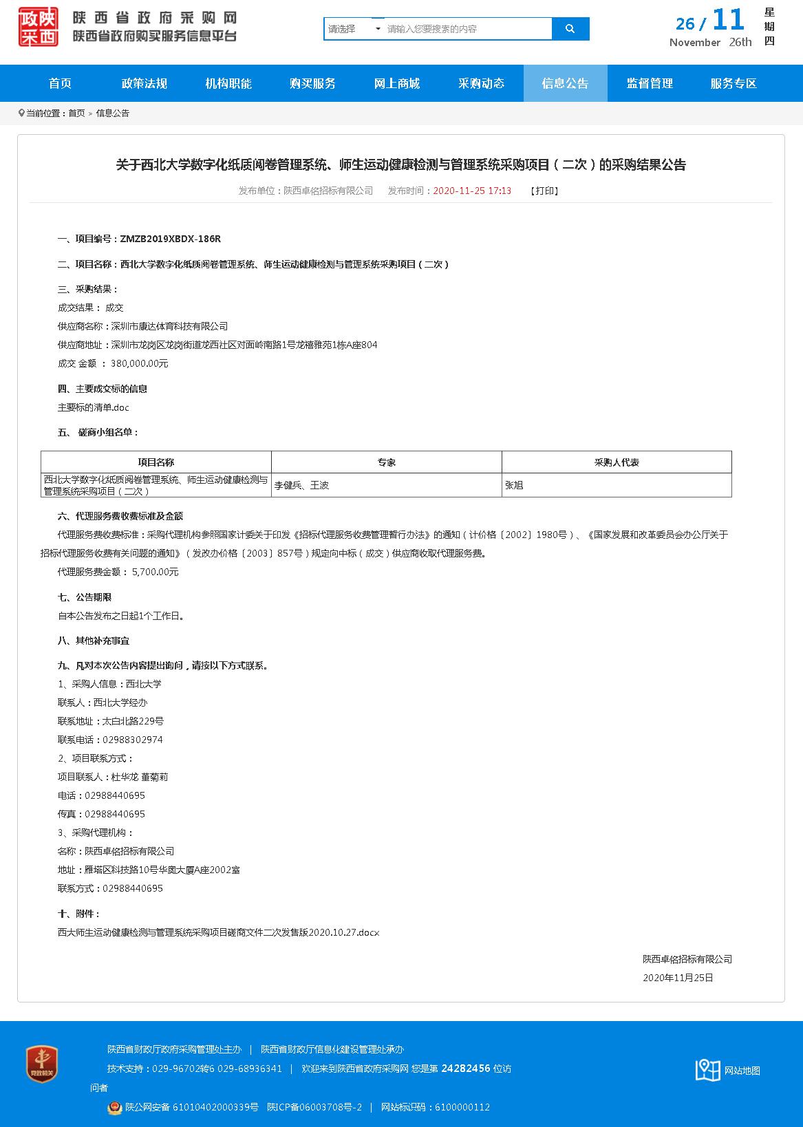 关于九游会在线登录官网数字化纸质阅卷管理系统、师生运动健康检测与管理系统采购项目(二次)的采购结果公告