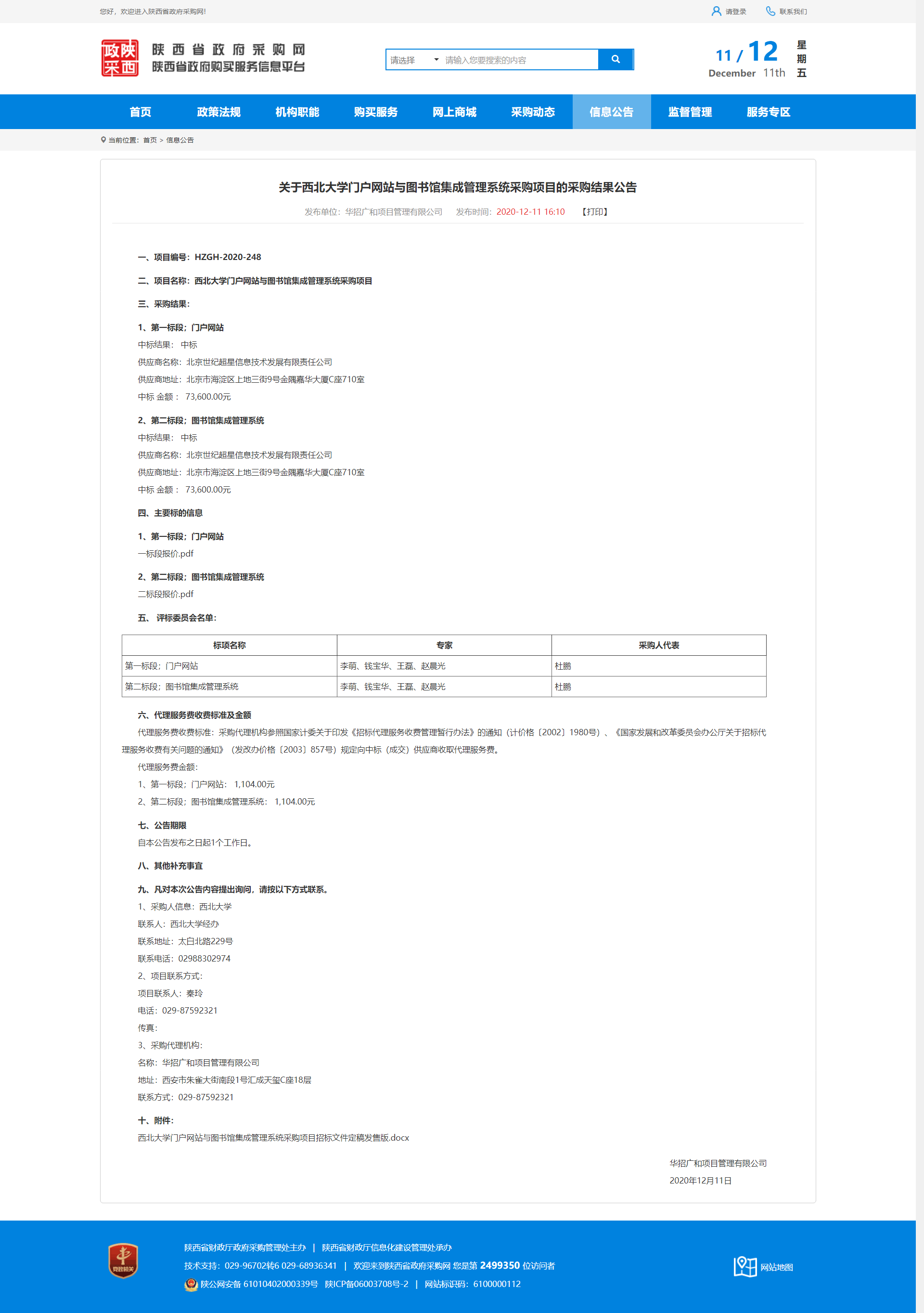关于九游会在线登录官网门户网站与图书馆集成管理系统采购项目的采购结果公告 作者: 编辑:薛利娟 时间:2020-12-11 原公告地址:http://www.ccgp-shaanxi.gov.cn/notice/noticeDetail.do?noticeguid=8a85be3275d5d5c2017650d7c2df14aa