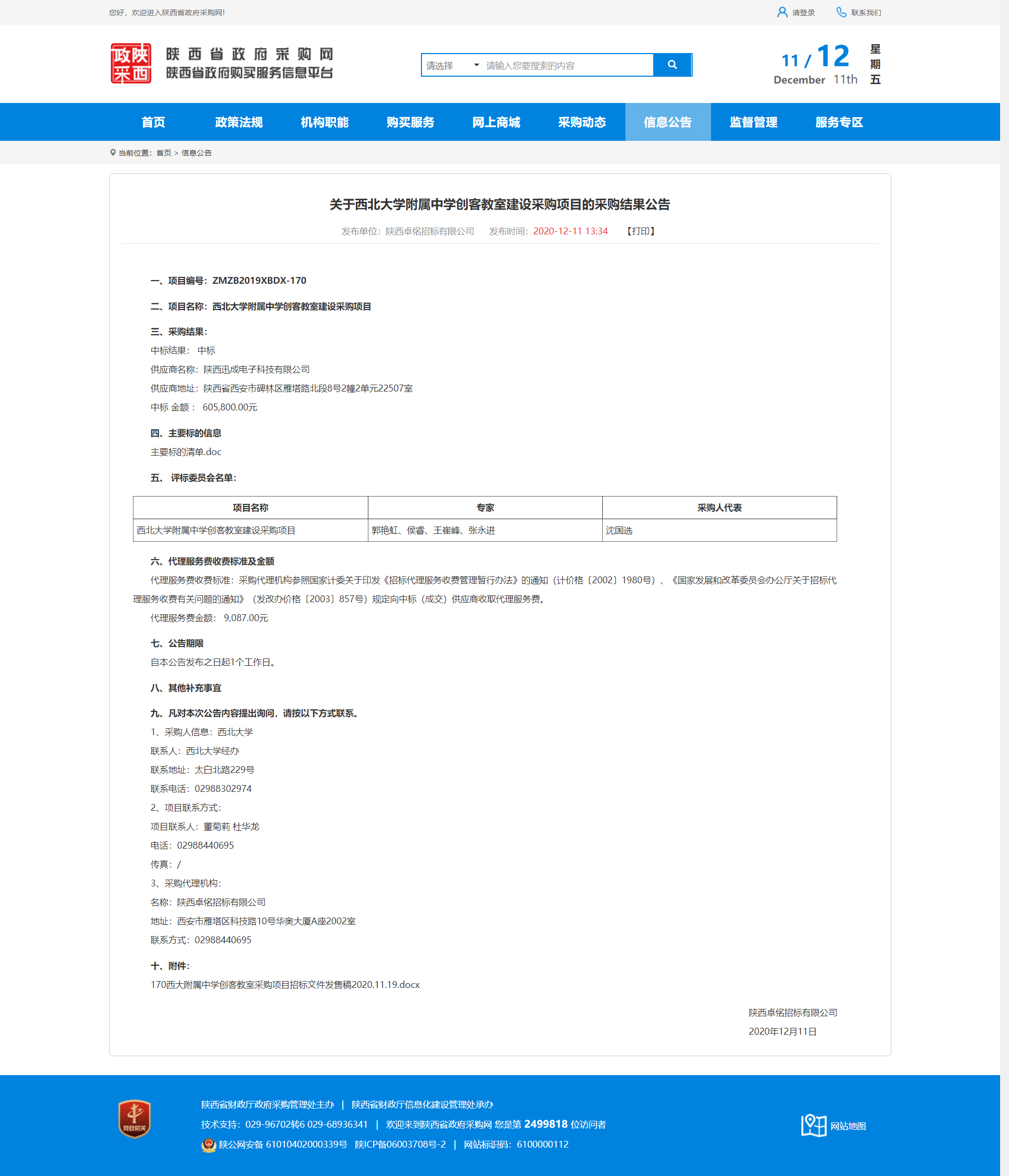 关于九游会在线登录官网附属中学创客教室建设采购项目的采购结果公告 作者: 编辑:薛利娟 时间:2020-12-11 原公告地址:http://ccgp-shaanxi.gov.cn/notice/noticeDetail.do?noticeguid=8a85be3275d5d5c2017650494fb1060f