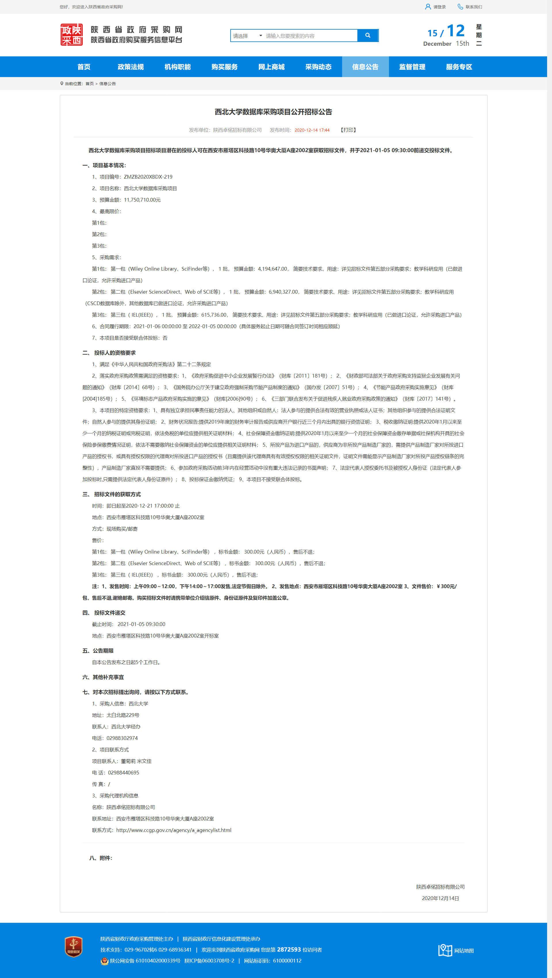 九游会在线登录官网数据库采购项目公开招标公告 作者: 编辑:薛利娟 时间:2020-12-15 原公告地址:http://www.ccgp-shaanxi.gov.cn/notice/noticeDetail.do?noticeguid=8a85be32765f9c9b0176607804921682