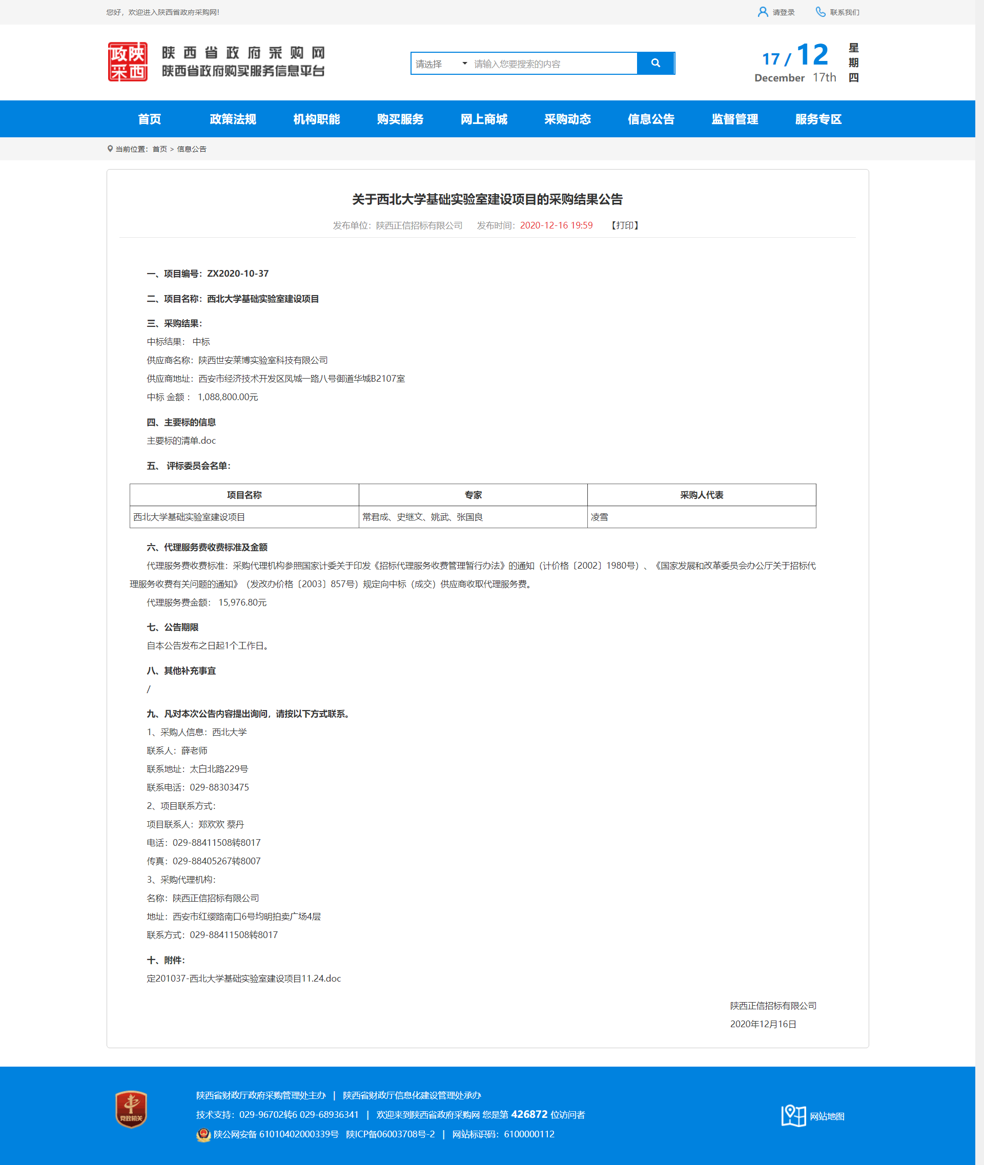 关于九游会在线登录官网基础实验室建设项目的采购结果公告 作者: 编辑:薛利娟 时间:2020-12-17 原公告地址:http://www.ccgp-shaanxi.gov.cn/notice/noticeDetail.do?noticeguid=8a85be33765f9dd001766b69b5de2728