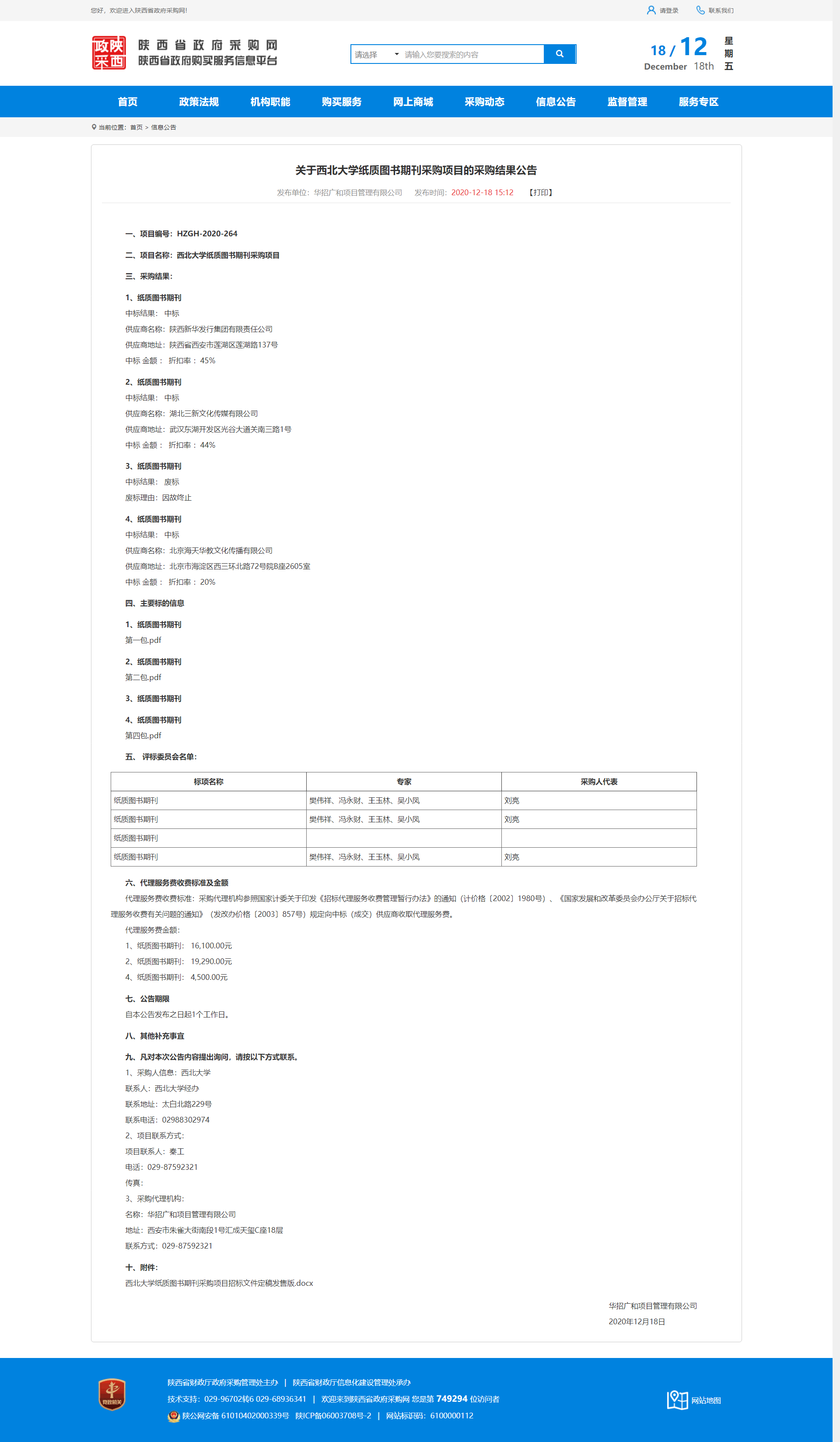 关于九游会在线登录官网纸质图书期刊采购项目的采购结果公告 作者: 编辑:薛利娟 时间:2020-12-18 原公告地址:http://www.ccgp-shaanxi.gov.cn/notice/noticeDetail.do?noticeguid=8a85be32765f9c9b017674ac3d207427
