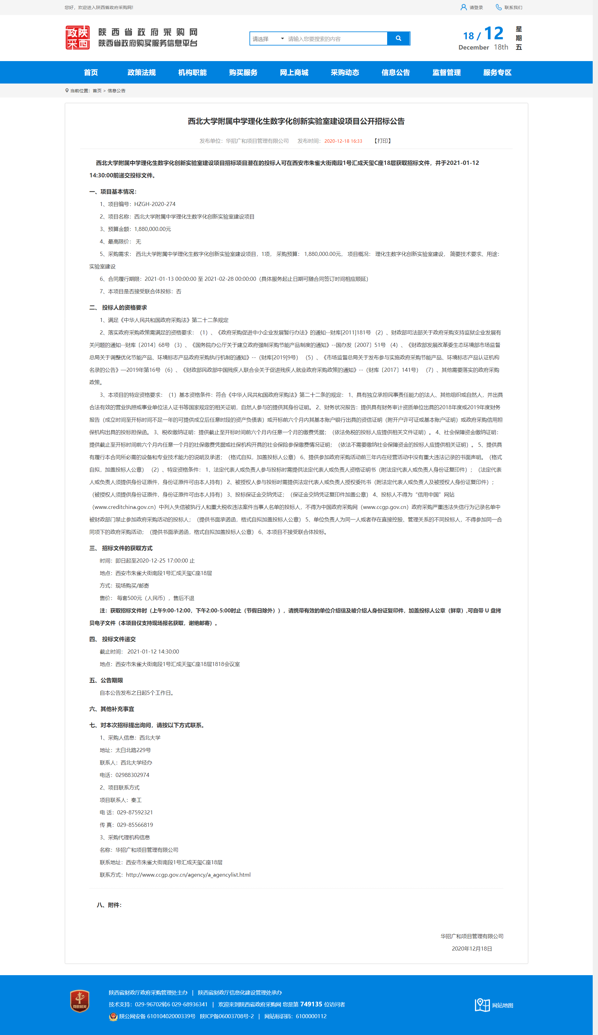 九游会在线登录官网附属中学理化生数字化创新实验室建设项目公开招标公告 作者: 编辑:薛利娟 时间:2020-12-18 原公告地址:http://www.ccgp-shaanxi.gov.cn/notice/noticeDetail.do?noticeguid=8a85be32765f9c9b017674de4e727a0f
