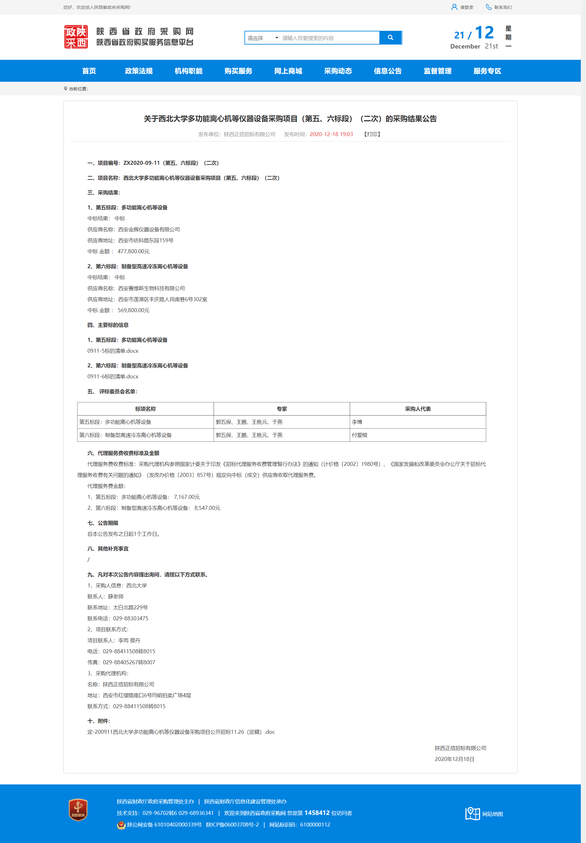 关于九游会在线登录官网多功能离心机等仪器设备采购项目(第五、六标段)(二次)的采购结果公告 作者: 编辑:薛利娟 时间:2020-12-21 原 原公告地址:http://www.ccgp-shaanxi.gov.cn/notice/noticeDetail.do?noticeguid=8a85be34765f9eac01767583a6a72bec