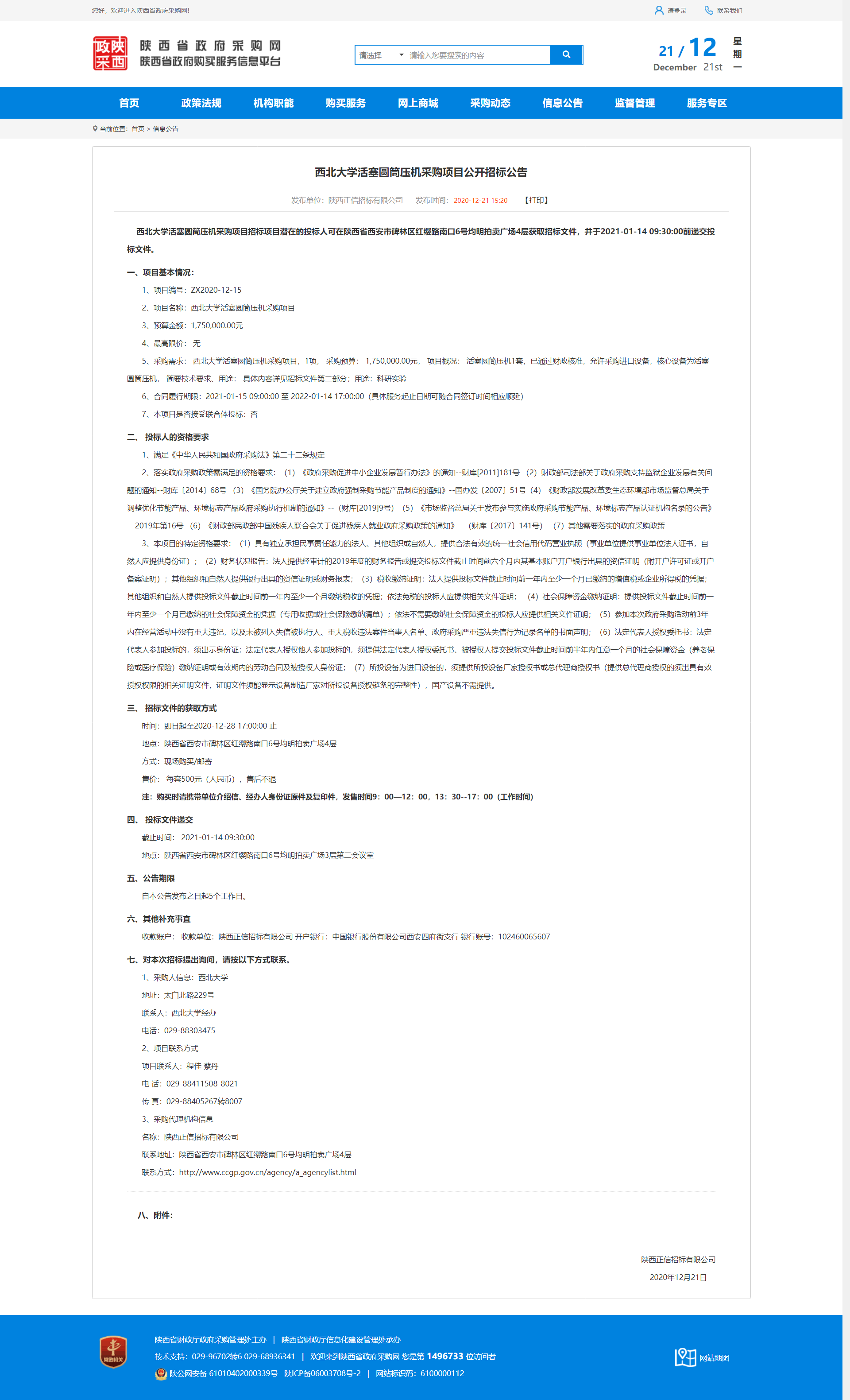 九游会在线登录官网活塞圆筒压机采购项目公开招标公告 作者: 编辑:薛利娟 时间:2020-12-21 原公告地址:http://www.ccgp-shaanxi.gov.cn/notice/noticeDetail.do?noticeguid=8a85be33765f9dd0017683bb212e48f1