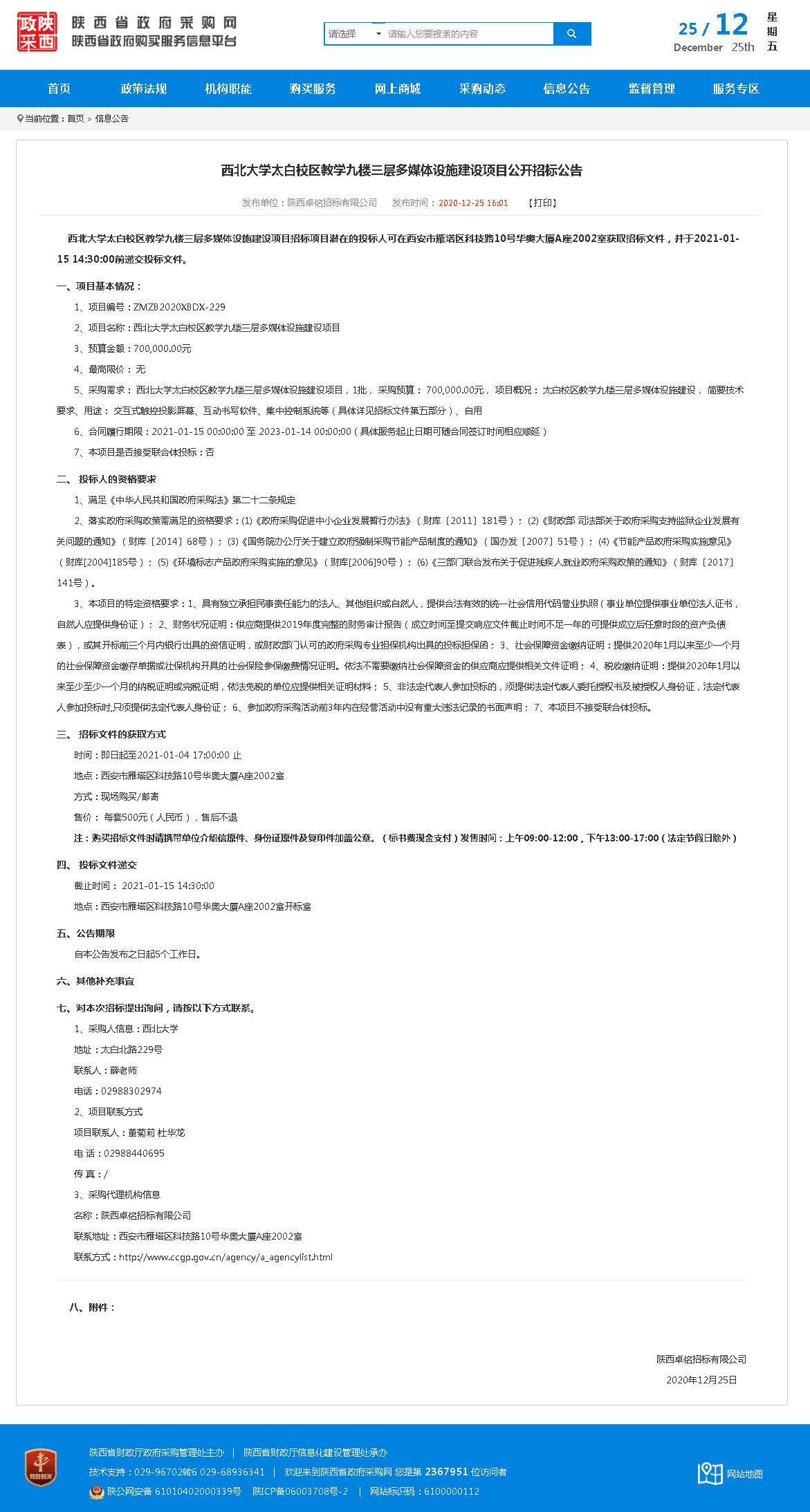 九游会在线登录官网太白校区教学九楼三层多媒体设施建设项目公开招标公告