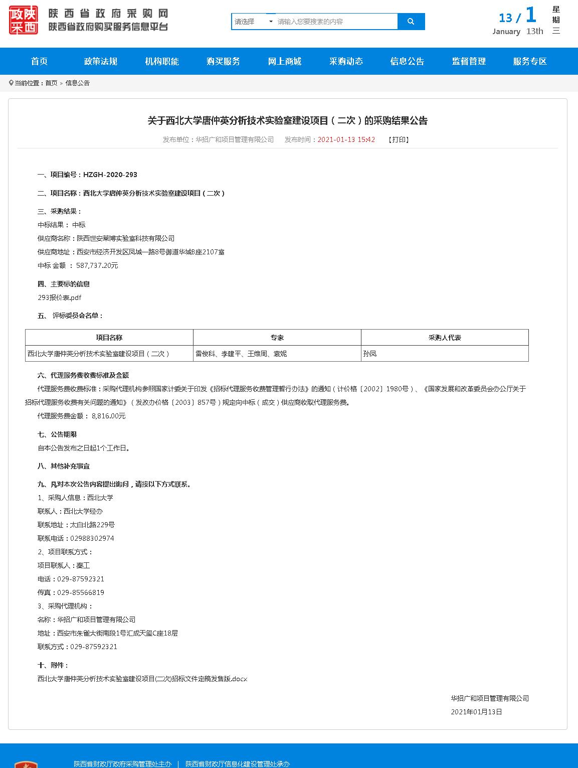 关于九游会在线登录官网唐仲英分析技术实验室建设项目(二次)的采购结果公告