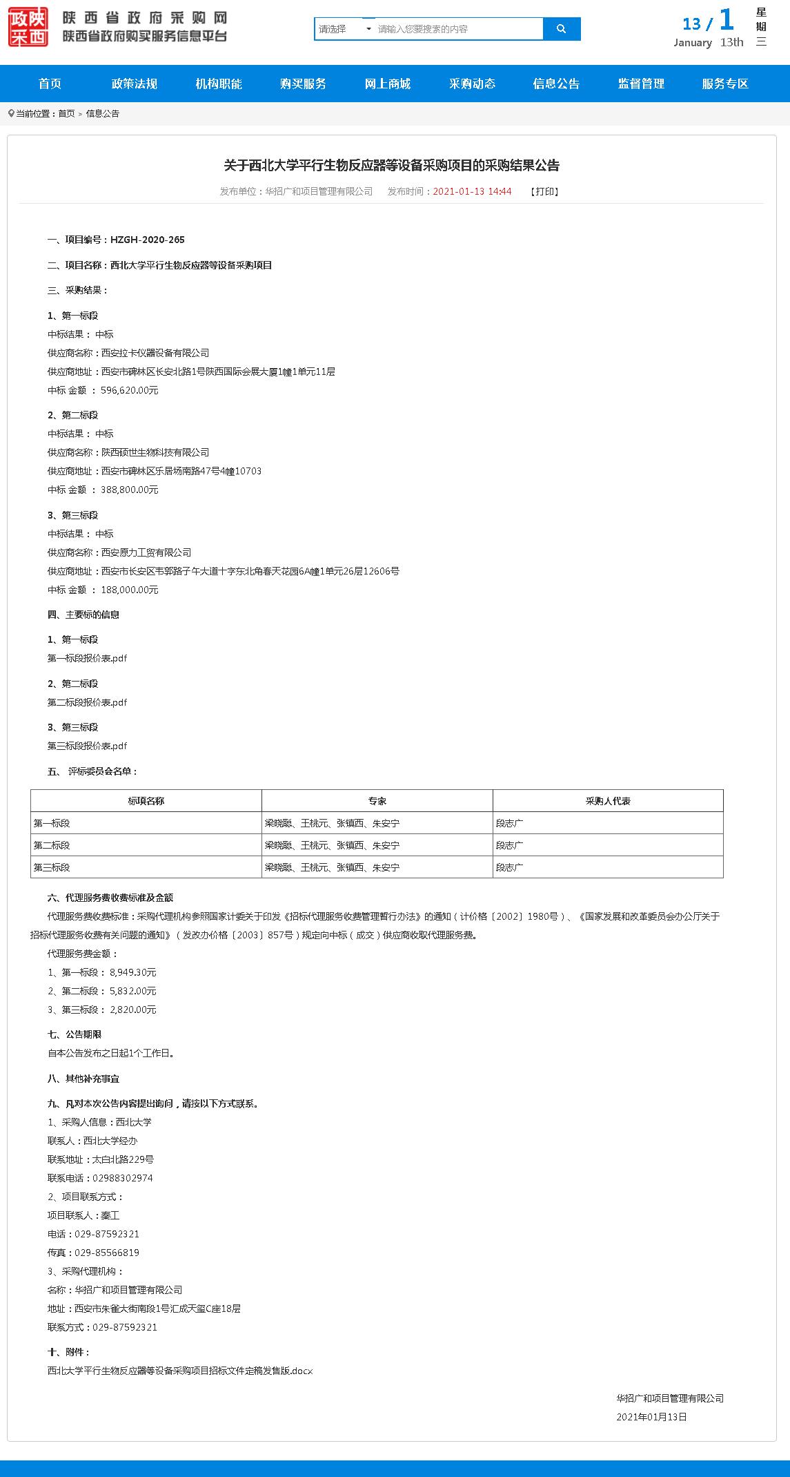 关于九游会在线登录官网平行生物反应器等设备采购项目的采购结果公告