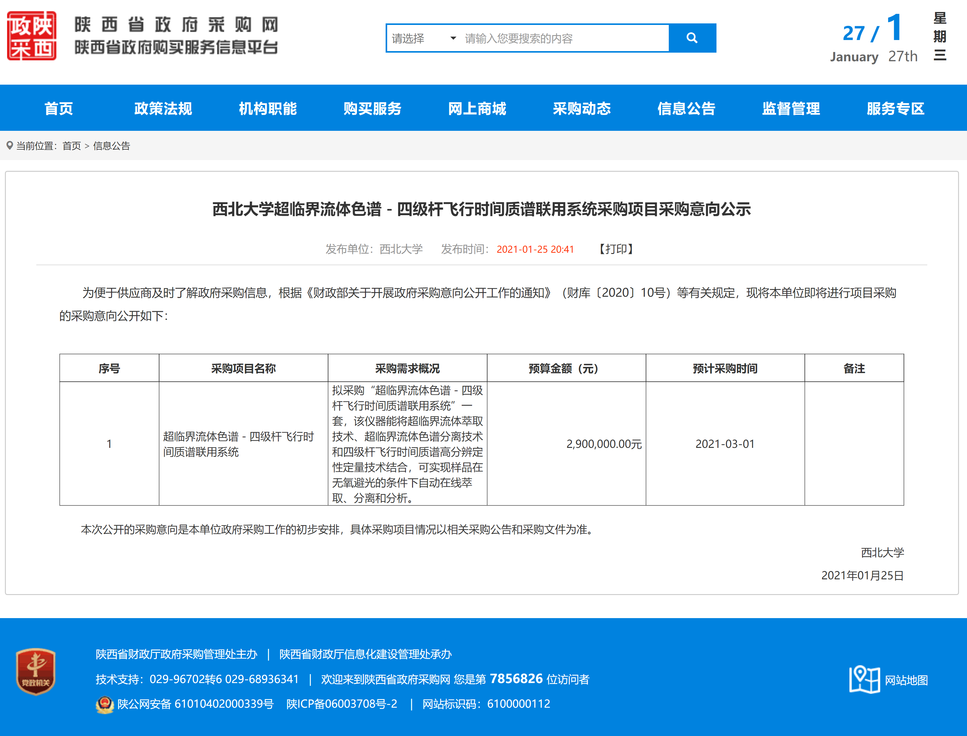 九游会在线登录官网超临界流体色谱-四级杆飞行时间质谱联用系统采购项目采购意向公示