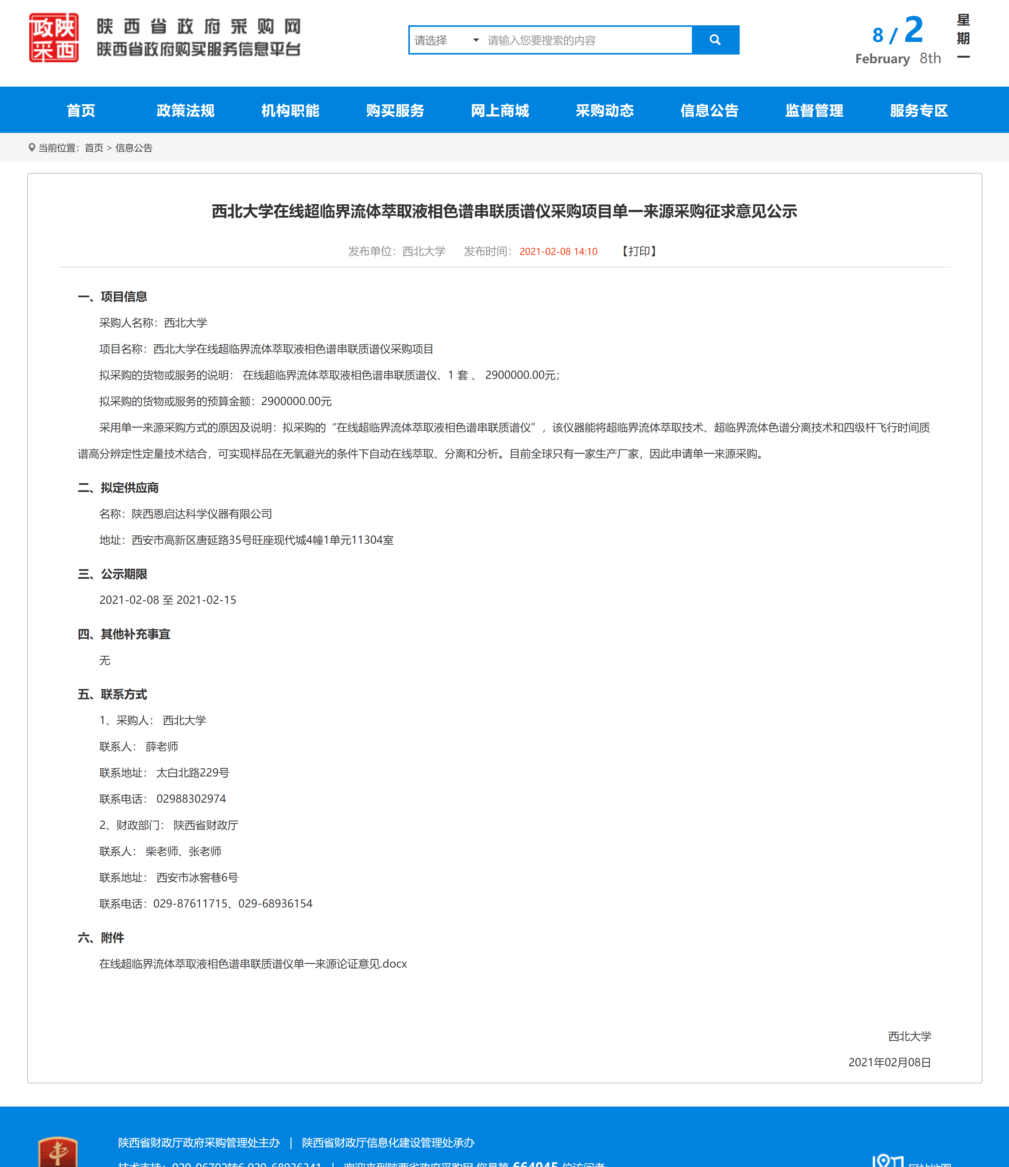 九游会在线登录官网在线超临界流体萃取液相色谱串联质谱仪采购项目单一来源采购征求意见公示